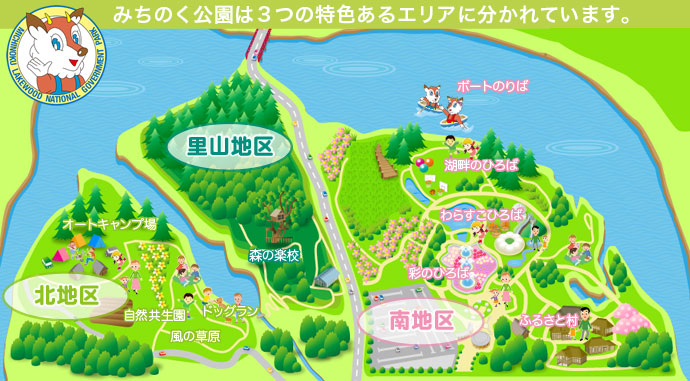 国営みちのく杜の湖畔公園規劃的露營區域是在北地區,就是下面這區域。