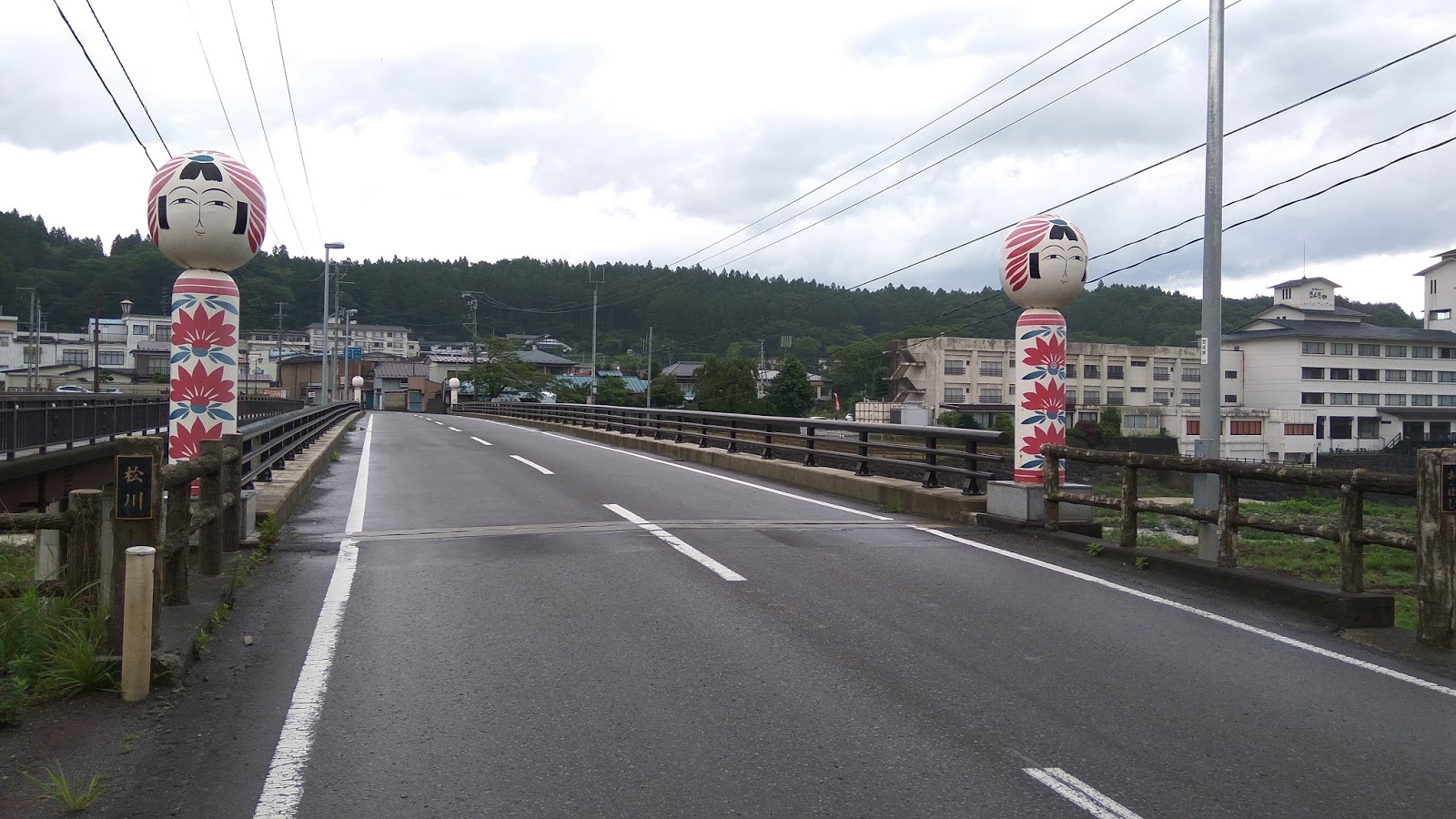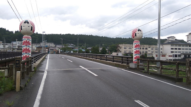 橋的兩端都有豎立象徵東北的鳴子木偶。