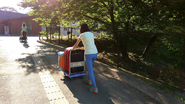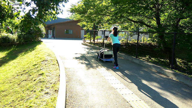 露營區不可開車進來,所以要用推車把裝備運進來,