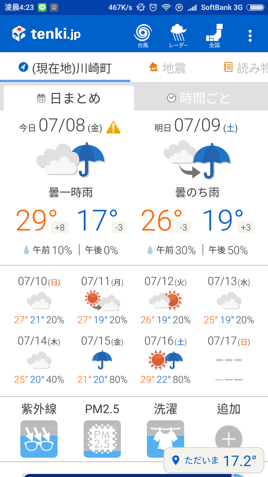來到日本露營,記得要安裝日本當地的天氣預報APP,
