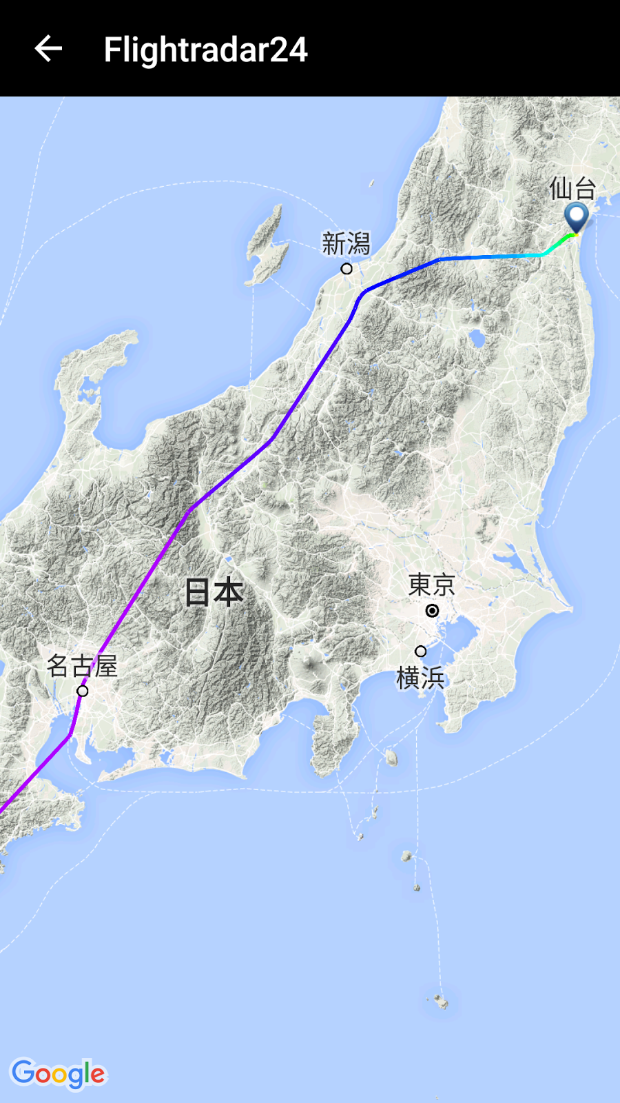 已飛到富士灣上方,準備飛越新潟到仙台機場。