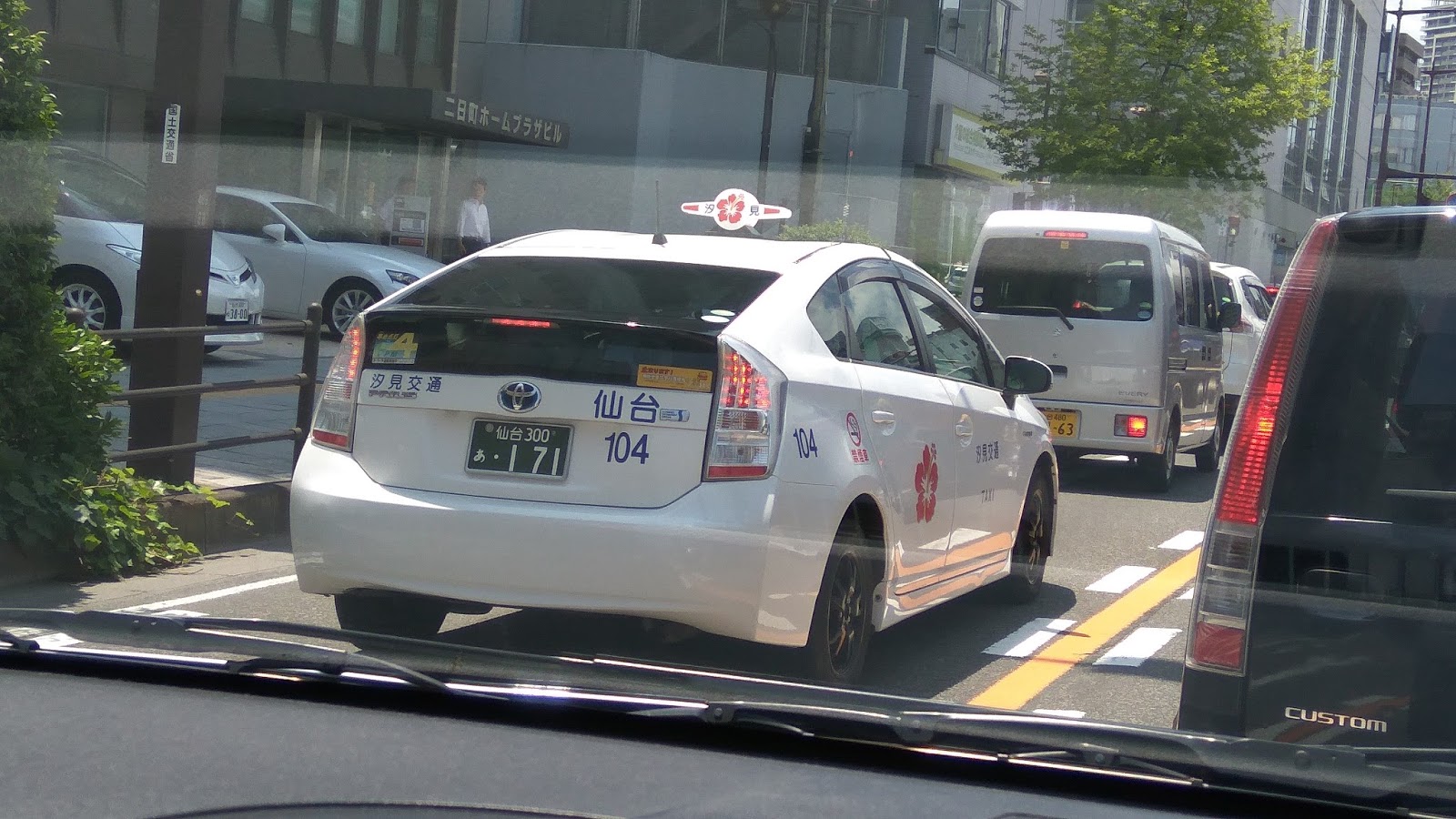 因為宮城縣有很多捕鯨漁港,計程車上方標誌有鯨魚出現。