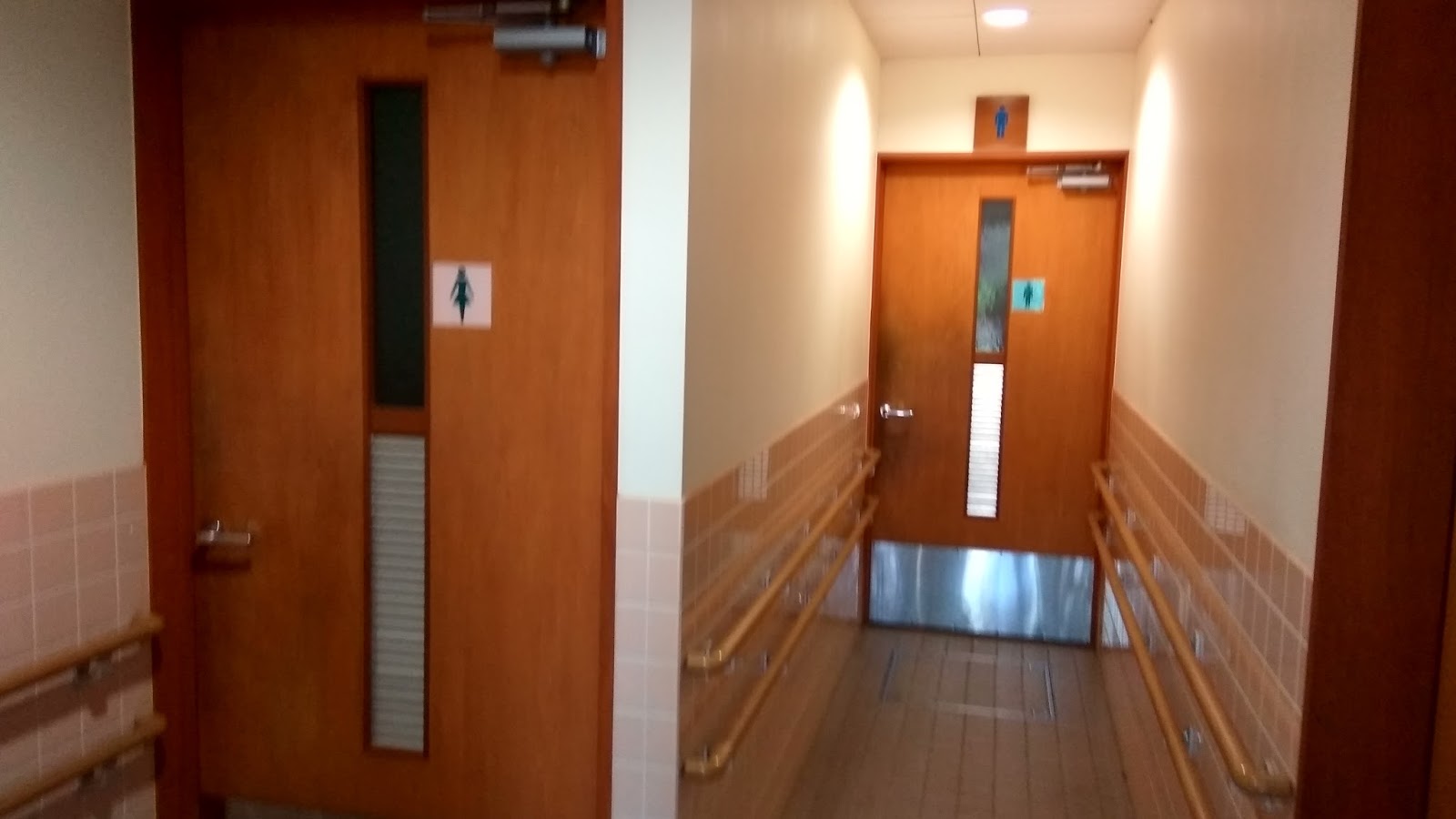 左至右分別是廁所,可供24人住的通鋪小木屋與琳浴間。